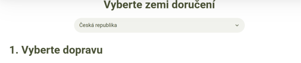 Díky tomu se zákazníkům v košíku zobrazí rozbalovací nabídka (roletka) pro výběr dopravy podle země. Toto rozlišení je důležité, protože poskytuje parametr, podle kterého pak GTM pozná, odkud zákazník objednává.
