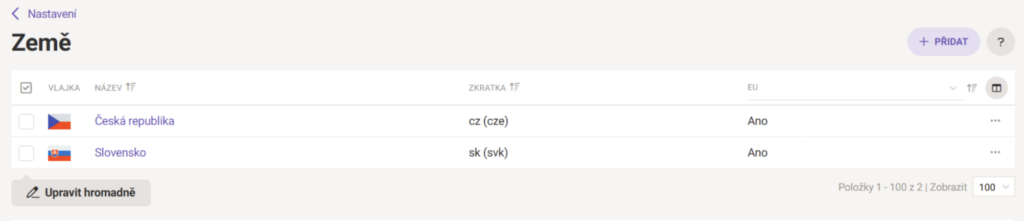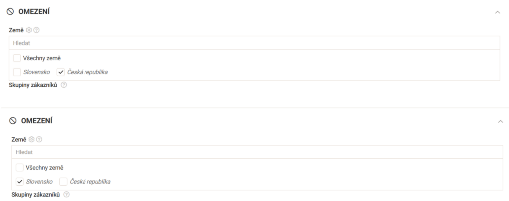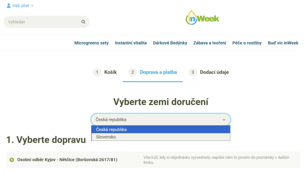 Na e-shopu vytvořte testovací objednávku a vyzkoušejte si postupně v roletce zaslání jak do Česka, tak i na Slovensko.