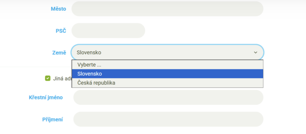 - Zákazník nemusí v dlouhé roletce hledat svou zemi pro fakturační nebo doručovací údaje.
