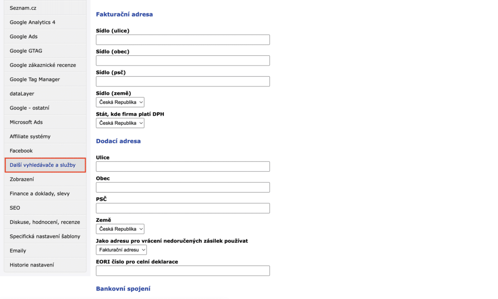 3.) V levém navigačním sloupci vyberte položku Další vyhledávače a služby.